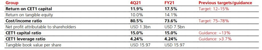 在2021年花费26亿美元进行股票回购后,2022年瑞银计划回购至多50亿美元的股票。瑞银拟定2021年Q4每股股息为50美分,高于市场此前预计的39美分。