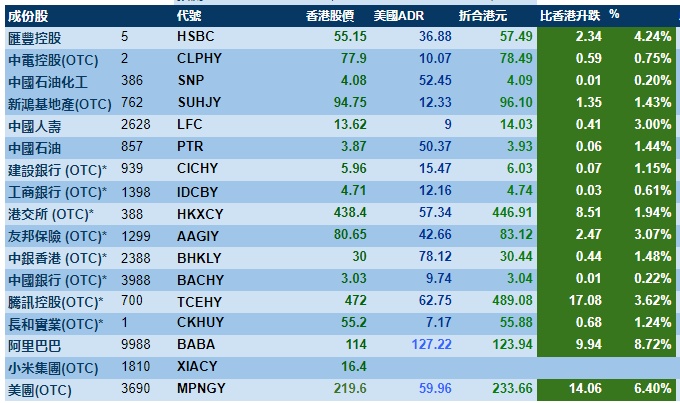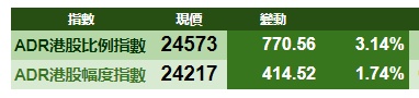 智通财经APP获悉,周二美股三大指数悉数上涨,港股ADR指数,按比例计算,收报24573点,涨770.56点或3.14%。
