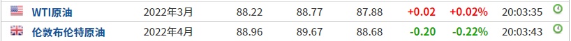 3. 截至发稿,WTI原油涨0.02%,报88.22美元/桶。布伦特原油跌0.22%,报88.96美元/桶。