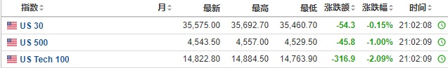1.2月3日(周四)美股盘前,美股三大股指期货齐跌。截至发稿,道指期货跌0.15%,标普500指数期货跌1.00%,纳指期货跌2.09%。