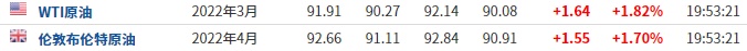 3.截至发稿,WTI原油涨1.82%,报91.91美元/桶。布伦特原油涨1.70%,报92.66美元/桶。