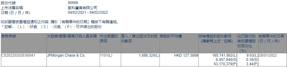 智通财经APP获悉,香港联交所最新资料显示,1月28日,小摩增持创科实业(00669)188.632万股,每股作价127.3869港元,总金额约为2.4亿港元。增持后最新持股数目约为1.66亿股,最新持股比例为9.03%。