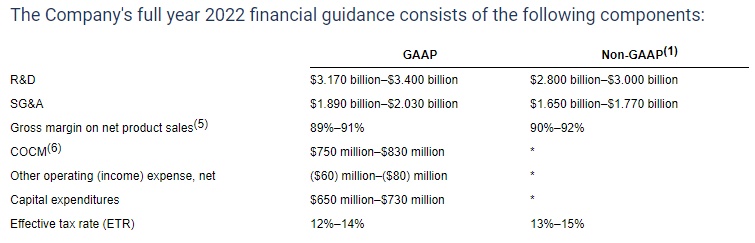 展望未来,再生元制药预计2022年全年GAAP研发支出为31.7亿- 34亿美元,产品销售毛利率为89%–91%,资本支出为6.5亿-7.3亿美元。