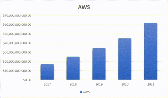 与零售业一样令人兴奋的是,AWS 是未来。2021年出现了许多里程碑,因为一些最重要的公司决定转向 AWS 来运营其业务。纳斯达克建立了一项多年合作伙伴关系,将其市场迁移到AWS,目标是成为世界上第一个完全启用的基于云的交易所。Meta Platforms ( FB ) 选择 AWS 作为其长期战略云提供商,以加速人工智能研发。Best Buy 选择 AWS 作为其首选的云提供商,并将企业系统和关键业务工作负载迁移到云中。高盛 ( GS ) 和 AWS 为金融机构推出了一套基于云的数据和分析解决方案。辉瑞(PFE) 还与 AWS 合作,联合航空公司 ( UAL ) 选择 AWS 作为其首选的云提供商。