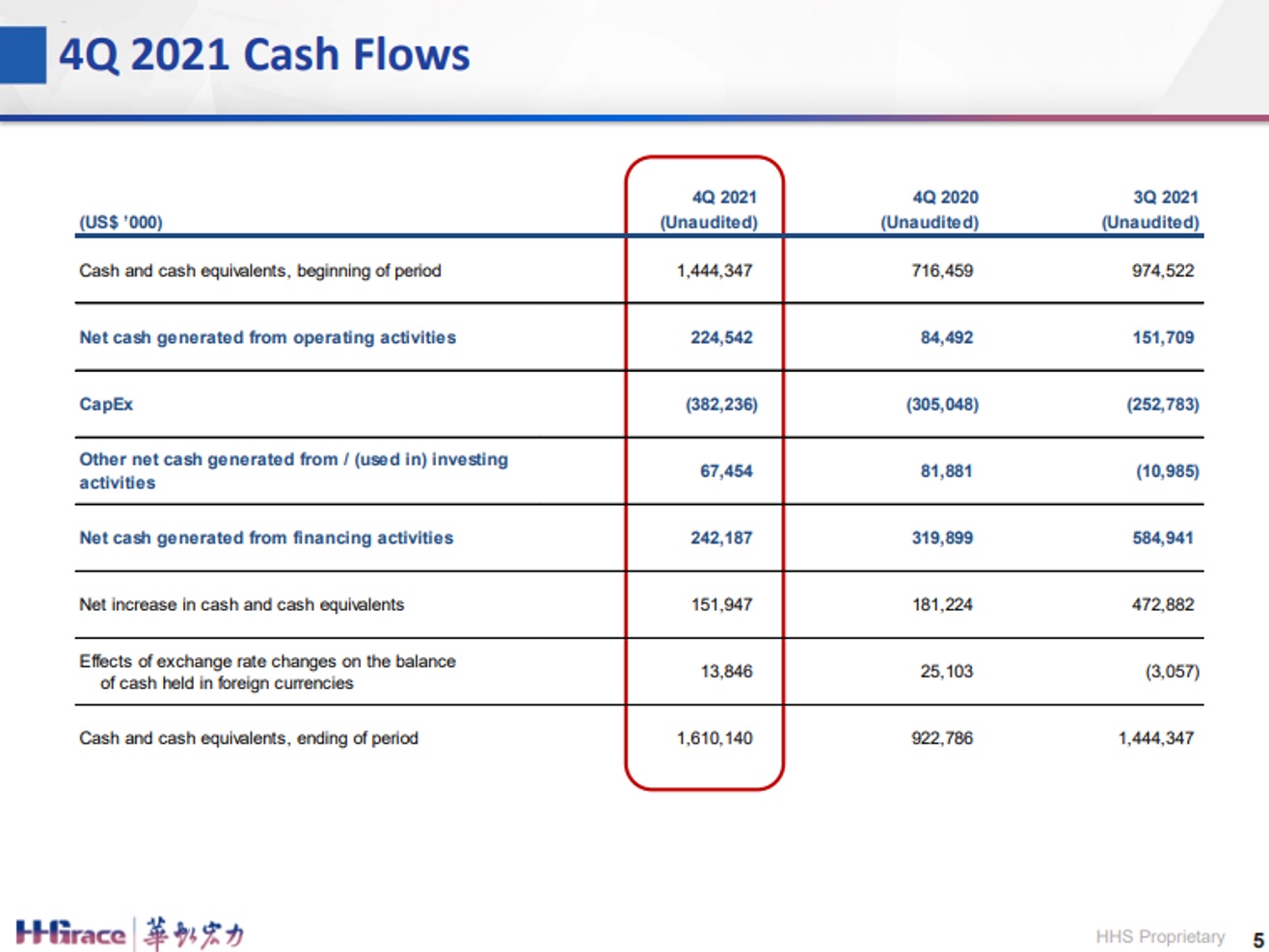 本季度资本开支3.822亿美元,其中3.525亿美元用于华虹无锡分部。