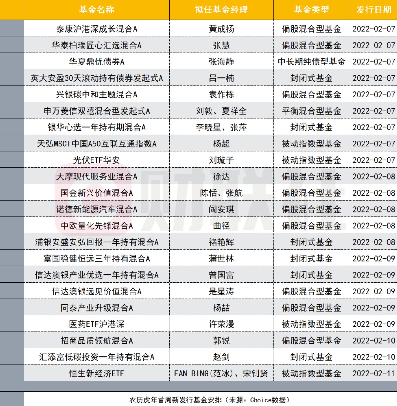 虎年基金发行的第一个“小高潮”将出现在此后一周的周一。