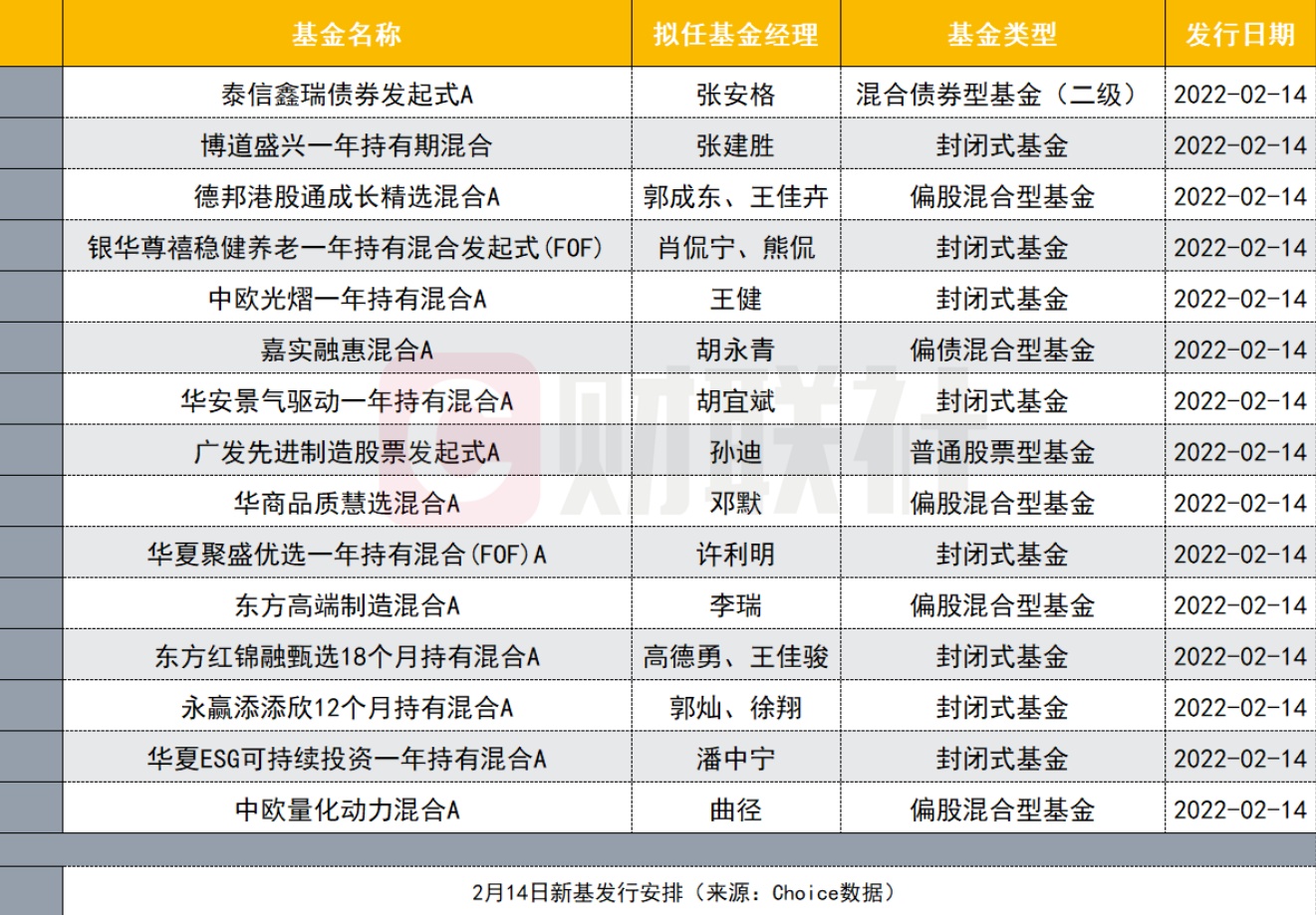 2月14日,单日15只产品发行,其中包括胡宜斌、孙迪等明星基金经理新发产品在列。虽然相较李晓星,上述两人管理规模稍低一筹,但都曾是一时的话题人物。