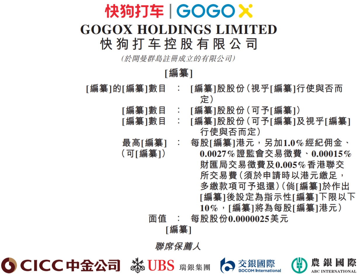 LIMITED(简称“快狗打车”)通过港交所聆讯,中金公司,瑞银集团,交银国际及农银国际为联席保荐人。