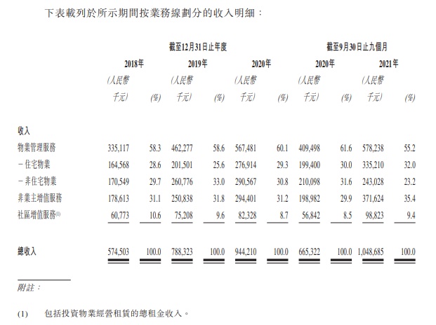 公司经营三项业务,分别为:(i)物业管理服务,(ii)非业主增值服务,及(iii)社区增值服务。公司也提供城市运营服务,其范围涵盖公司的三大业务线。公司已成立逾25 年,专注于在中国提供物业管理服务。除物业管理服务外,公司也提供非业主增值服务(如案场、咨询及其他增值服务)。公司也提供主要面向在管物业业主及住户的各类社区增值服务。