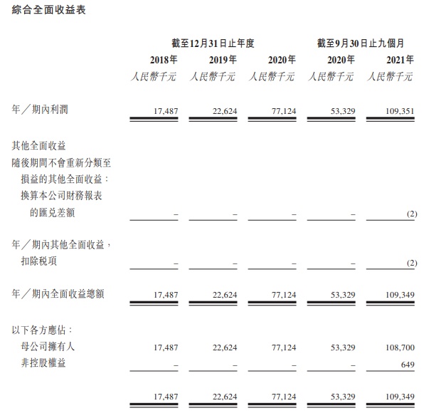 同时,公司的年度利润由2018年的人民币1748.7万元增加至2019年的人民币2262.4万元,并进一步增加至2020年的人民币7712.4万元,2018年至2020年的复合年增长率为110.0%。截至2020年及2021年9月30日止九个月,公司的利润分别为人民币5332.9万元及人民币1.09亿元。