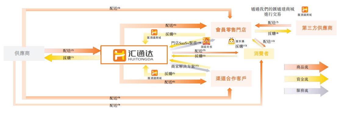 再看汇通达网络的主要服务对象,正是产业价值链上的零售门店以及渠道合作客户提供门店,也可以理解为上游的大型B端用户联合小型B端用户;后者为乡镇夫妻店,也是下沉市场传统商业网点,更被称为我国商业领域中的“毛细血管”,并运用这样的方式去触达到C端的消费者,同时以会员制作为业务模式的基础。规模方面,已经完成21个省、2万个乡镇的覆盖,同时拥有超过16万家会员店以及2万家渠道合作客户。