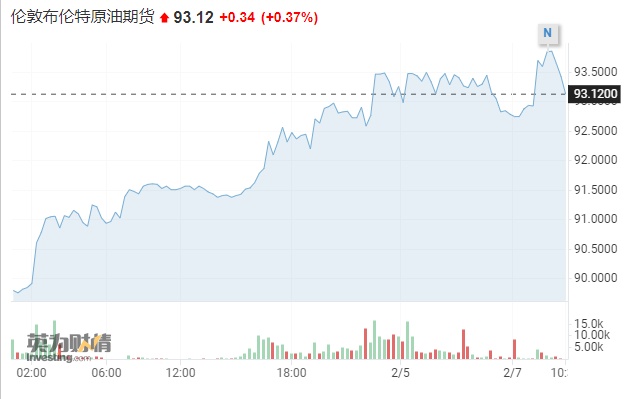 在上周五一度触及2014年10月以来的最高点93.70美元后,截至发稿,布伦特原油期货涨0.37%,报93.12美元/桶;WTI原油期货跌0.84%,报91.53美元/桶。