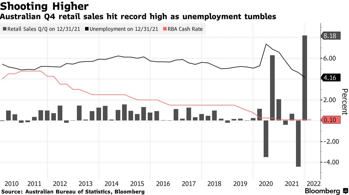与此同时,澳大利亚上周发布的贸易数据显示,2021年最后三个月的进口也出现了相应的激增,这也受到了家庭需求旺盛的推动。