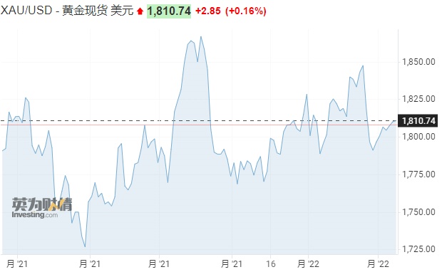 智通财经APP了解到,尽管10年期美国国债收益率和美元指数从一月底的年内低点上扬,但金价仍维持在1800美元/盎司上方。截至发稿,现货金仍位于1800美元/盎司的关口附近,报1810.74美元。