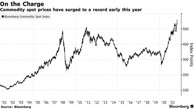 追踪23种能源、金属和农作物期货的Bloomberg商品现货指数(Bloomberg Commodity Spot Index)今年已创下新高。这在一定程度上是由油价飙升推动的,目前油价已达到2014年以来的最高水平。截至发稿,WTI原油期货价格跌0.83%,报91.54美元/桶;布伦特原油期货价格跌0.32%,报92.97美元/桶。