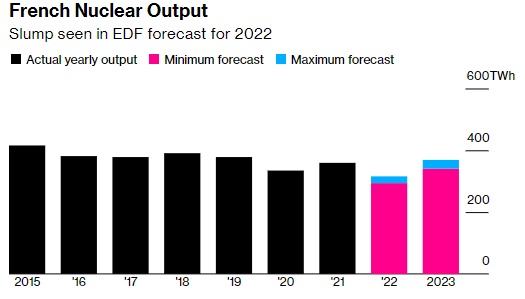 德国3月份电力价格上涨了5.5%,法国价格上涨了0.6%。周一晚些时候,EDF将其对2022年发电量的预测从此前的300至330太瓦时下调至295至315太瓦时。