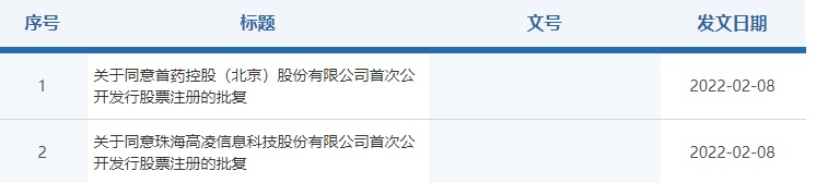 证监会同意首药控股、高凌信息科创板首次公开发行股票注册