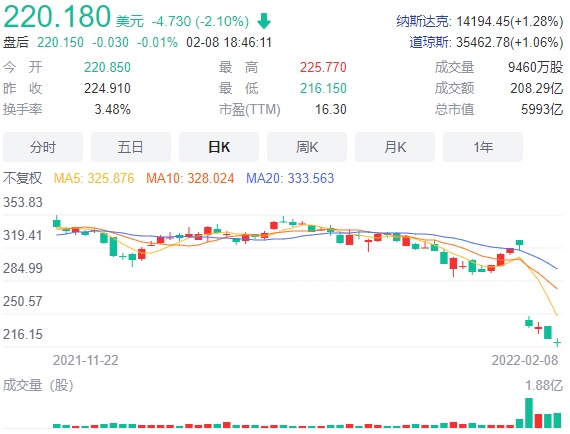 Platform(FB.US)再次收跌2.1%,股价连续第四个交易日出现下跌,创下了21个月来的最低点,自财报公布以来跌幅持续扩大至32%。