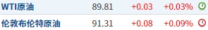 截至发稿,WTI原油涨0.03%,报89.81美元;布伦特原油涨0.09%,报91.31美元。