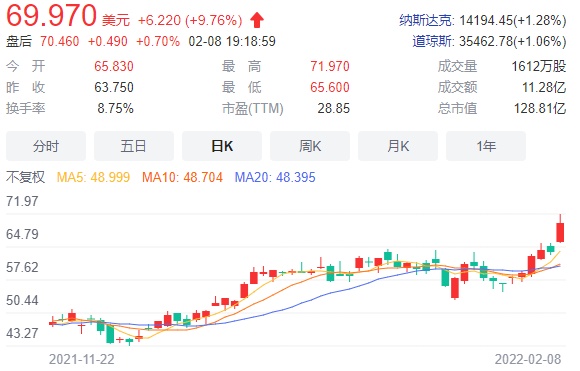 智通财经APP获悉,在铝价飙升至13年来的最高水平,同时高盛将12个月铝价预期上调至创纪录的每吨4000美元刺激下,美国铝业(AA.US)周二盘中一度飙升至71.97美元创历史新高,最终收涨9.76%,报69.97美元。