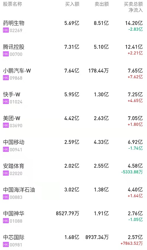 小鹏汽车-SW(09868)获净买入7.61亿港元。消息面上,2月9日,深交所发布公告称,根据《深圳证券交易所深港通业务实施办法》的有关规定,将小鹏汽车纳入深港通下的港股通股票名单,自2月9日起正式生效。分析人士称,小鹏汽车纳入港股通后有助于公司股票流动性的提升,引入港股通资金同样有助于对二级市场价格纠偏。