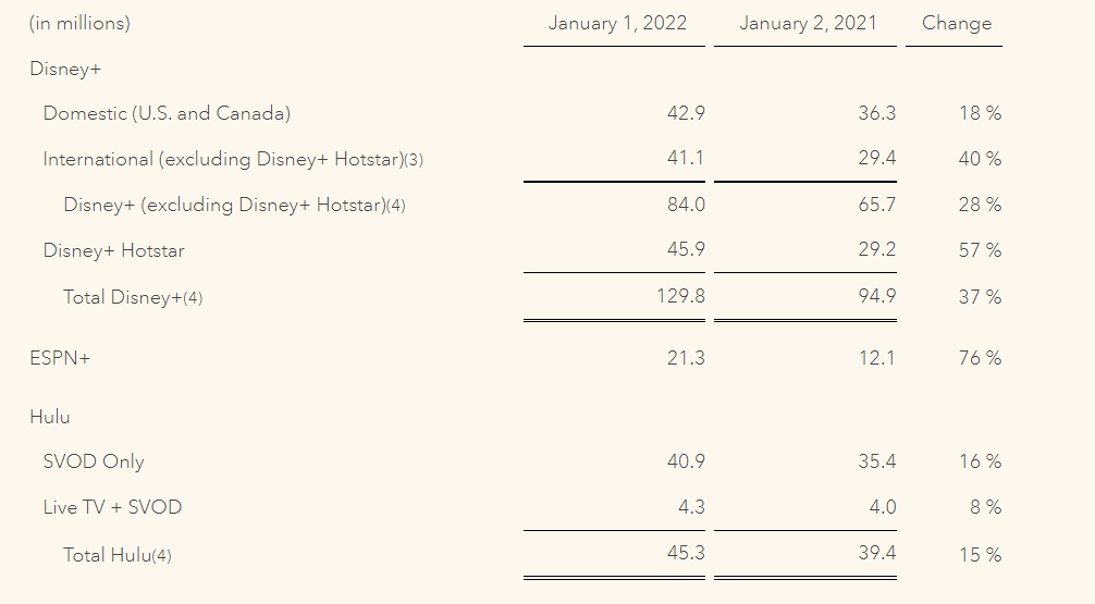 迪士尼旗下ESPN+的订阅用户数为2130万,同比增长76%,ARPU值为5.16美元/月,同比增长15%。Hulu的总订阅用户数达4530万,同比增长15%,其中SVOD Only订阅用户数为4090万,同比增长16%,Hulu SVOD Only ARPU值为12.96美元/月,同比下降4%,Hulu Live TV + SVOD ARPU值为87.01美元,同比增长16%。