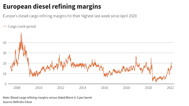 智通财经APP注意到,在周一,西北欧柴油货运价格达到114美元/桶,为2014年9月以来的最高水平,而上周欧洲炼油厂利润率达到两年来的最高水平。