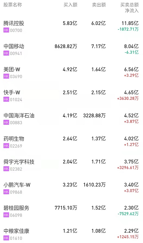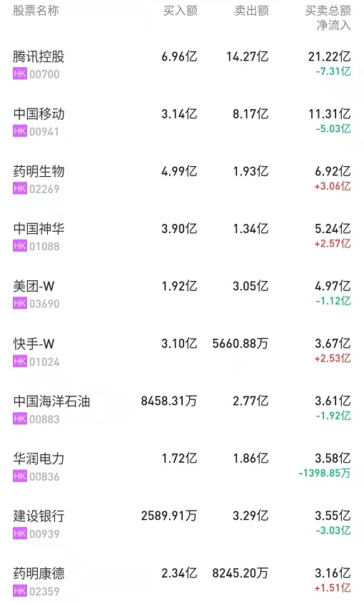 中国移动(00941)遭净卖出11.34亿港元。消息面上,中国移动公布,人民币股份发行的超额配售选择权行使期已于2022年2月7日届满。公司按照人民币股份发行价格每股人民币57.58元,在初始发行约8.46亿股人民币股份的基础上额外发行约5706.79万股人民币股份,约占人民币股份发行初始发行人民币股份数目的6.75%。值得注意的是,中金公司使用本次发行超额配售所获得的资金以竞价交易方式从二级市场买入中国移动合计6978万股A股,对应40.18亿元,买入价为57.58元/股。
