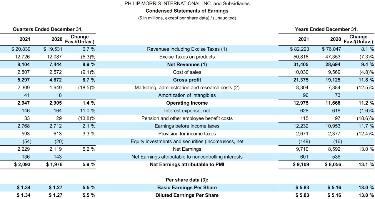 四季度,菲利普莫里斯卷烟和加热烟草出货量增长了4.2%;其中,卷烟出货量增长2.4%,加热烟草出货量增长17.0%至254亿支。在除美国以外的IQOS市场,加热烟草的市场份额上涨了1.0个百分点至7.1%。
