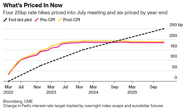 在通胀再次超出预期后,交易员加大了对美联储将更大幅度加息的押注,期货价格显示,美联储下月加息0.5个百分点的可能性超过50%,是美联储自2000年以来首次单次加息50个基点。