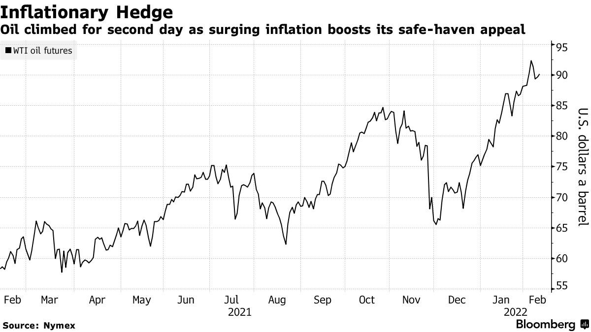 智通财经APP观察到,1月CPI数据昨日公布之后,10年期美债收益率突破2%大关,美股三大指数转跌,但在成本压力不断上升之际,市场开始押注原油将被视为更安全的投资选择。