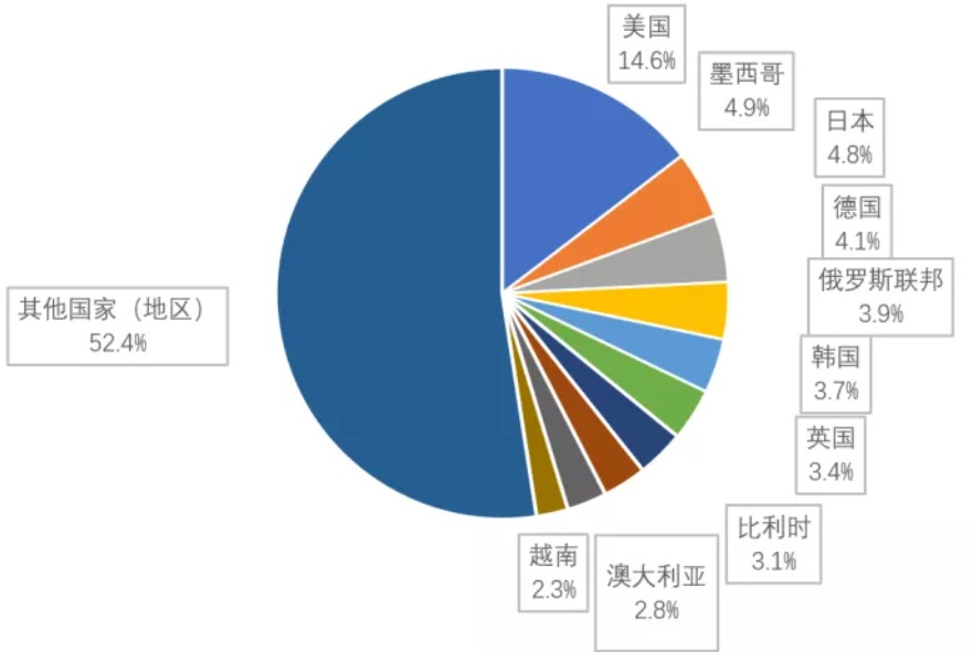 智通财经APP获悉,据中国汽车工业协会整理的海关总署数据显示,2021年,中国汽车商品出口金额排名前十位国家依次是美国、墨西哥、日本、德国、俄罗斯联邦、韩国、英国、比利时、澳大利亚和越南。与上年相比,上述十国出口金额均呈快速增长,其中比利时和英国增速更为显著。2021年,上述十国出口金额602.8亿美元,占全部汽车商品出口总额的47.6%。