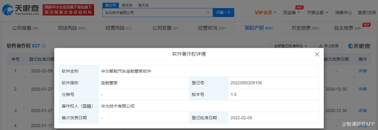 智通财经APP获悉,据天眼查显示,2月9日,华为技术有限公司“智能汽车座舱管家软件”已获得登记批准,登记号为2022SR0209156,批准日期为2022年2月9日,当前版本号为1.0。据华为智能汽车解决方案官方微博,华为智能汽车解决方案BUCOO王军称,未来座舱操作系统只有1个或者2个生态,对此华为非常有信心。此外,王军称华为的智能驾驶技术将于2022年商用,目标是在2025-2030年实现真正的智能驾驶。