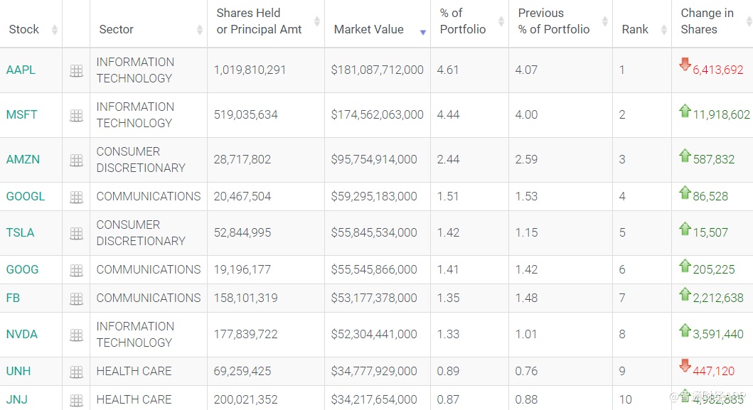 微软(MSFT.US)位列第二,持仓约5.19亿股,持仓市值约1745.62亿美元。