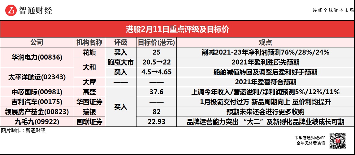 花旗予华润电力(00836)“买入”评级,目标价下调4%至25港元。由于煤炭成本上升,削减2021-23年净利润预测76%/28%/24%。假设燃煤电价在2022年同比增长5%,单位燃料成本同比减少5%。华润电力预计,去年纯利同比减少70%至80%。该行表示,对此并不意外,因为同业华能国际电力股份(00902)和华电国际电力股份(01071)同样发盈警。该行指出,华润电力的11.7倍2022年预测市盈率和1.1倍市账率,与中国可再生能源股相比显得不昂贵,预计在今年下半年分拆可再生能源业务将带来估值上行。