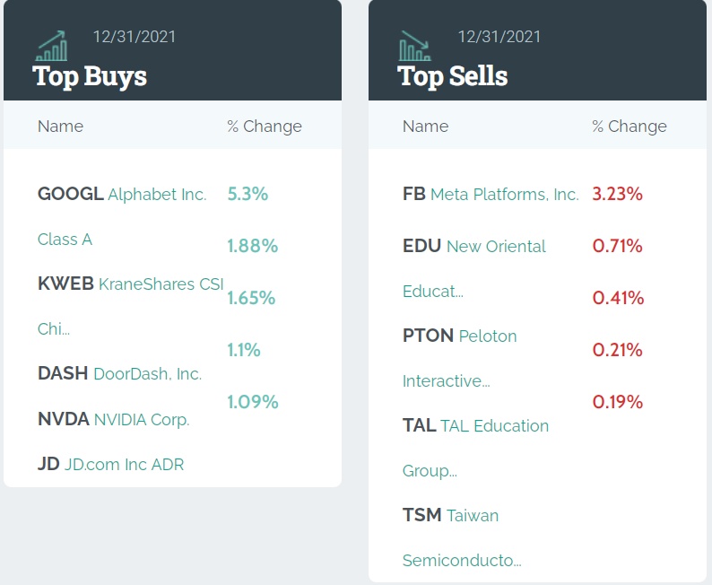 从持仓比例变化来看,前五大买入标的分别是:谷歌A、KraneShares中国海外互联网ETF(KWEB.US)、DoorDash(DASH.US)、英伟达(NVDA.US)、京东(JD.US)。