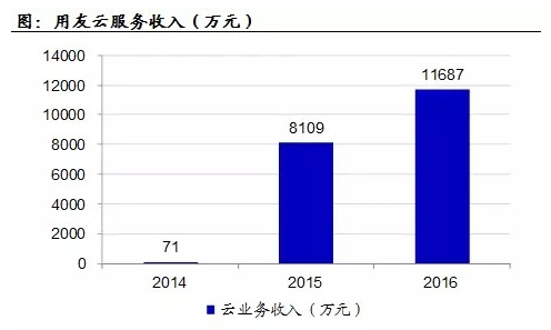 受益于市场回暖和产品的不断升级,2016年畅捷通的云业务增长强劲,在工作圈、好会计、易代帐等云产品推出,收入同比增长61%。云服务业务新增企业用户数超过164万,同比增长253%,累计企业用户数达到225万。