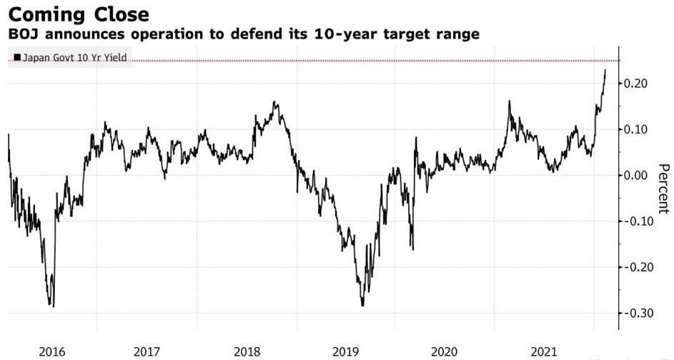 日本央行仍是一个例外,在其他央行开始缩减刺激措施之际,仍维持超宽松政策。通过这一固定利率操作,日本央行将0.25%的利率设定为交易员更明确的底线,并加大了目前继续实施刺激计划的承诺力度。在日本央行收益率曲线控制政策下,其为基准利率设定了一个理想的交易区间,即±0.25%。