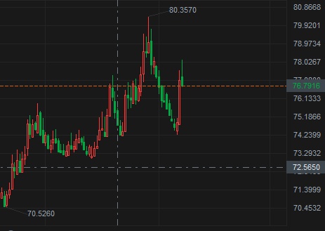 智通财经APP了解到,俄罗斯卢布汇率今日一度下跌1.4%,至1美元兑78.2900卢布,随后卢布收复跌幅并实现上涨,截至发稿,汇率数据显示1美元兑76.6648卢布,可谓经历“冰火两重天”,在上周五,卢布汇率暴跌2.8%。尽管俄罗斯央行上周五宣布在不到一年的时间里第三次加息100个基点,但乌克兰问题引发的紧张局势仍令卢布不断承压。