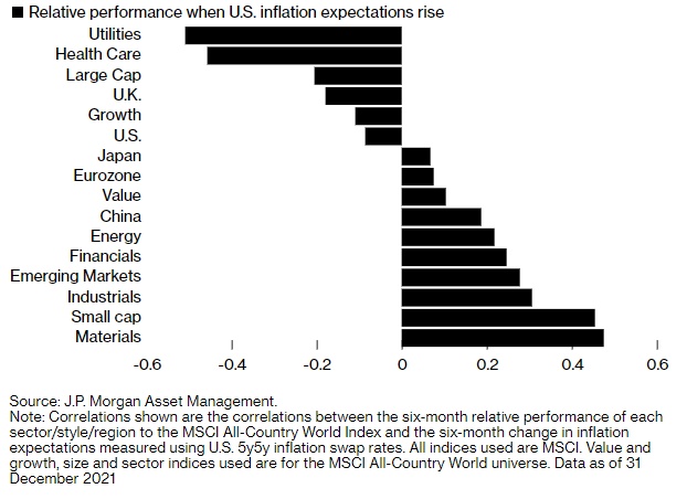 摩根大通资产管理分析师表示,在通胀预期上升和利率上升期间,材料、工业、能源和银行等部分市场表现较好。但该行全球市场策略师Hugh Gimber表示,关键是要投资收益有弹性的公司。Gimber表示,企业“需要证明,在投入成本上升的情况下,它们能够保持有弹性的利润率”。