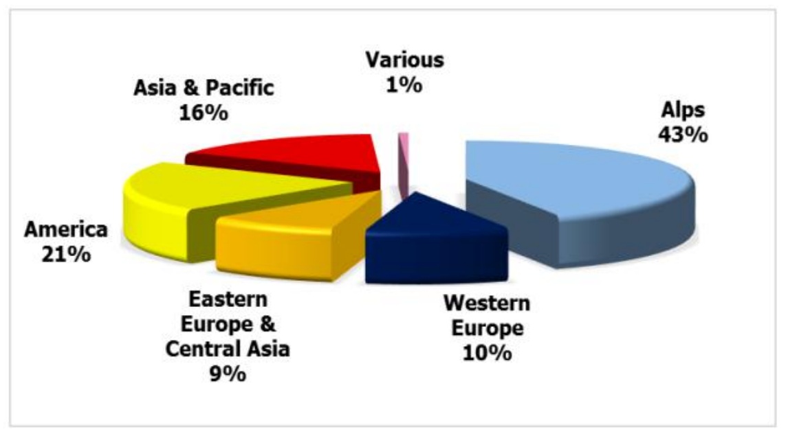智通财经APP了解到,截至2021年6月,复星旅游文化ClubMed在全球六大洲超过40多个国家和地区运营63家。上文谈到阿尔卑斯山是份额最大的滑雪目的地,覆盖法国、瑞士、列支敦士登、奥地利、德国南部及斯洛文尼亚,而在法国及瑞士的度假村中,该公司就有19家,占比超过三成。