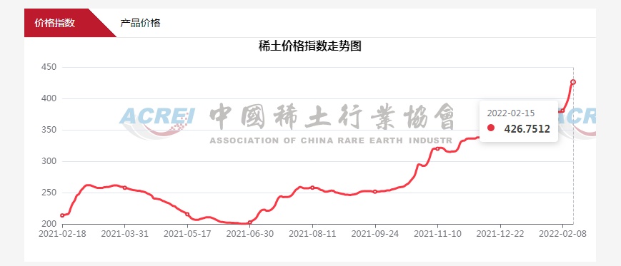 中国稀土行业协会:2月15日稀土价格指数为426.8 再创历史新高