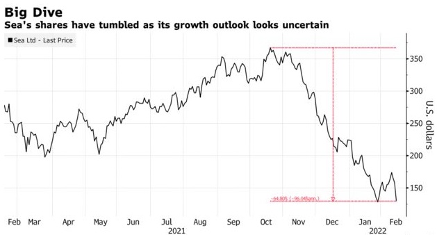周一,“木头姐”Cathie Wood旗下基金管理公司ARK Investment Management LLC周一购买了超过14.5万股Sea(SE.US)股票,其中大部分通过Ark Next Generation Internet ETF购买。同时,有消息称,印度内政部以“对印隐私和安全构成威胁”为由,“建议”封禁包括Sea旗下的大型游戏《Free Fire》等手机应用程序。随后。“东南亚小腾讯”Sea盘中一度跌近20%,逼近127美元,创1月28日以来盘中新低,创2017年10月在纽交所上市以来最大盘中跌幅,收跌逾18%。截至本周一收盘,Sea今年初以来累计跌超42%,最近五日跌幅接近17%。