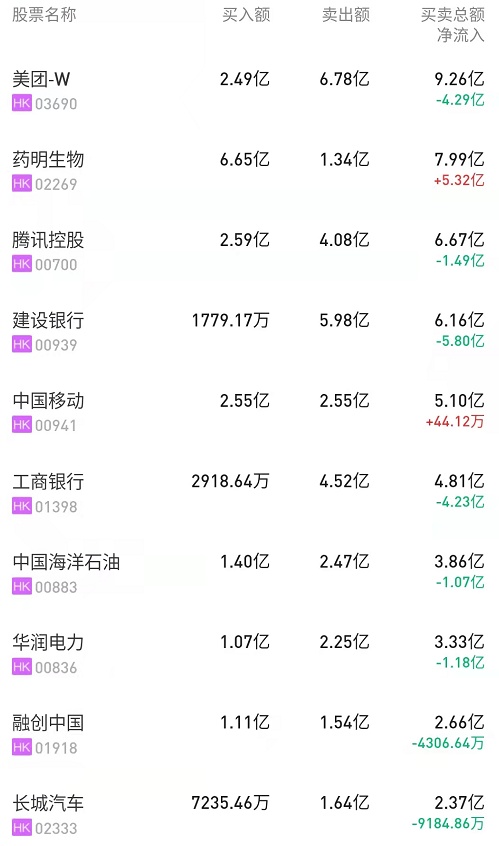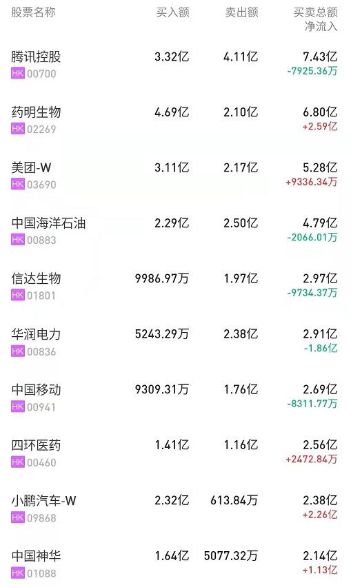 北水净买入最多的个股是药明生物(02269)、小鹏汽车-W(09868)、中国神华(01088)。北水净卖出最多的个股是建设银行(00939)、工商银行(01398)、华润电力(00836)。
