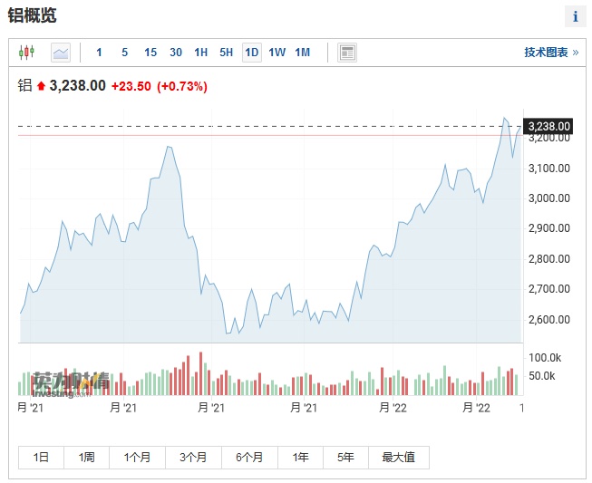 数据显示,上周,铝价盘中一度达到3333美元/吨,这是该金属自2008年创下3380.15美元/吨的历史纪录以来的最高水平。