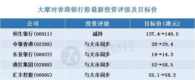智通财经APP获悉,大摩发布研究报告称,香港银行股即将公布业绩。由于净息差和财富管理收入承压,第四季银行股业绩应会疲软,预计2022年银行财富管理收入继续承压,贷款增长疲软,但净息差改善将推动股价上涨,当中汇丰控股(00005)和渣打集团(02888)对此最敏感;将汇控目标价由55.1港元上调至58.2港元;渣打目标价由52港元上调至58.5港元。