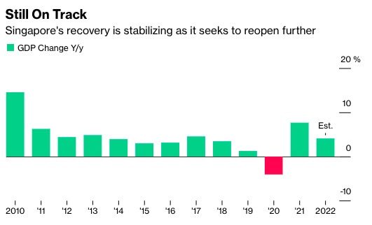 智通财经APP获悉,由于新加坡从疫情中复苏的势头趋于稳定,并寻求放松对病毒的限制,贸易和工业部周四表示,重申了去年11月的预测,预计今年国内生产总值(GDP)将增长3%至5%,将2021年的增长率由此前的7.2%上调至7.6%。