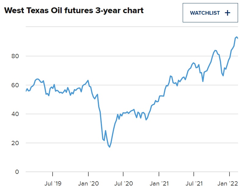 与其他全球生产商一样,美国行业在2020年初被疫情摧毁。石油价格暴跌,芝加哥商品交易所(CME)的原油期货价格甚至一度转为负值。现在,在油价上涨的推动下,美国石油行业一直在缓慢复苏。去年油价上涨了50%以上。目前,俄乌冲突推动油价超过每桶90美元,达到7年来的高点。