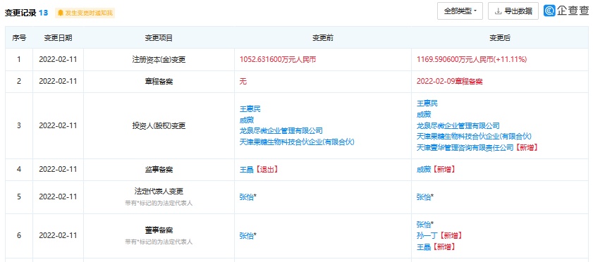 智通财经APP获悉,企查查App显示,SEVENCHIC香氛笔关联公司糖果(上海)化妆品有限公司近日发生工商变更,新增股东天津壹华管理咨询有限责任公司(乐华娱乐子公司),同时由孙一丁任董事、戚薇任监事。据公开资料显示,糖果(上海)化妆品有限公司成立于2020年5月,SEVENCHIC香氛笔是一家化妆品品牌,主要从事美妆产品的开发及销售业务,主要有香氛、卸妆、底妆、眉眼妆及唇妆系列产品。