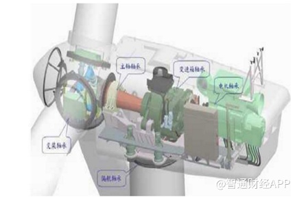 其中轴承又细分为偏航轴承、变桨轴承、主轴轴承、齿轮箱轴承和电机轴承。